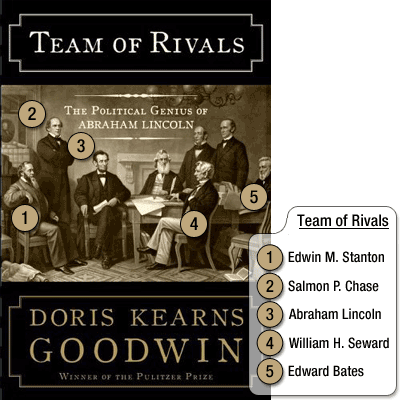 teamofrivals1“Asked by CBS’ Steve Kroft whether he planned to put political enemies in his Cabinet, as Abraham Lincoln did, Obama responded by saying the first president from Illinois was a “very wise man.” With the economy struggling, the president-elect said the nation had little choice but to boost government spending, something he said conservative and liberal economists agreed on. “We have to do whatever it takes to get this economy moving again,” he said. “We’re going to have to spend money now to stimulate the economy.” Besides Lincoln, Obama said he had been reading about the Great Depression and President Franklin D. Roosevelt’s first 100 days in office. He said he hoped his team could emulate that administration’s confidence and willingness to experiment.“